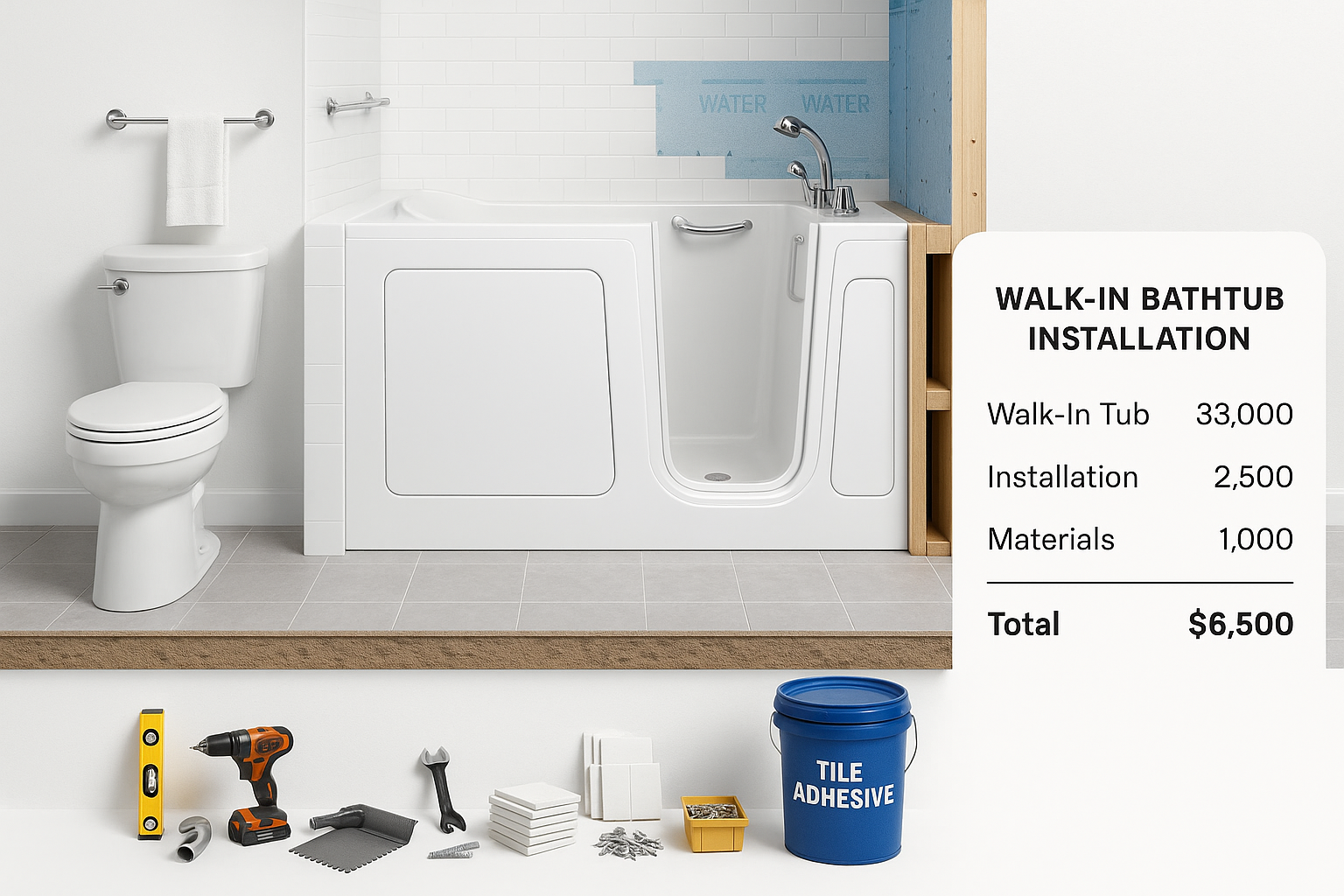 Several key factors can impact the total cost of installing a walk-in bathtub: